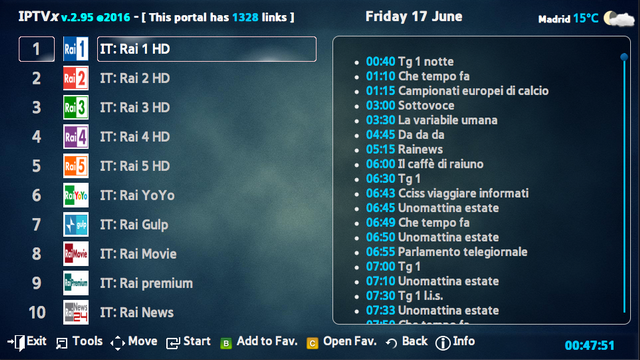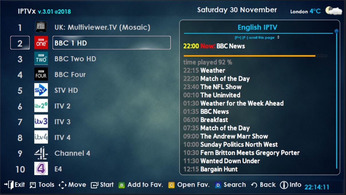 and all credit for the great work goes to FIOKOM. The main purpose of widget is to watch IPTV or WebTV from the Internet on the BIG TV screen. The playlist could be loaded from a local or remote server, or directly from USB drives... On top of that, there is a support for EPG from different channel providers and Weather Forecast for European Capital Cities. IPTVx supports following type of the streams: "rtmp", "udp", "mms", "rtsp", "hls", "http", "ts" IPTVx also supports the playback all types of the media files supported by your TV. It allows to use your own M3U or XML playlists and make for the most flexible widget experience possible!!!